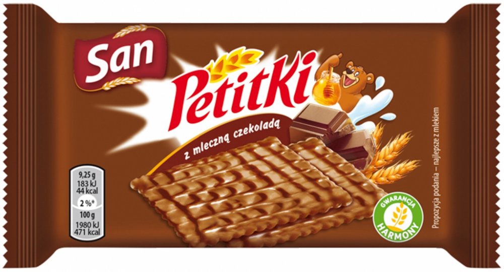 Složení: Pšeničná mouka 48 %,čokoláda mléčná 34 % [cukr),kakaová hmota, kakaový tuk, syrovátka v prášku (z mléka),odtučněné sušené mléko,rostlinné tuky (palmový olej, bambucký olej v proměnlivém poměru),mléčný tuk, laktóza (z mléka), emulgátory (sójový lecitin,E476), aroma, cukr,palmový olej, plnotučné sušené mléko 1,6 %,kypřící látky (uhličitany amonné, uhličitany sodné,pyrosiřičitan sodný), glukózo-fruktózový sirup, med 0,9 %,sůl, emulgátor (sójový lecitin), aromata