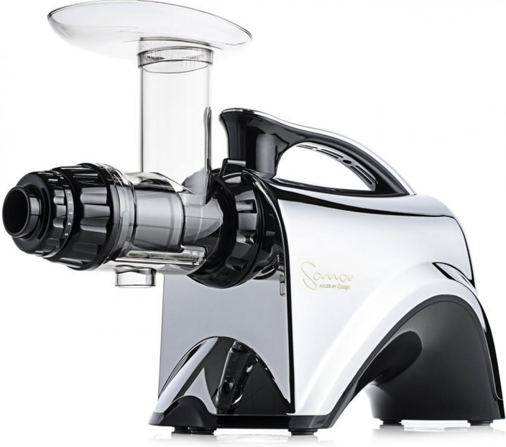 * SANA JUICER EUJ-606 BY OMEGA je horizontální šnekový odšťavňovač, který pracuje v rozmezí 63 – 75 ot./min. Nízké otáčky omezují oxidaci a zahřívání šťávy, ve které tím pádem zůstane více živin.