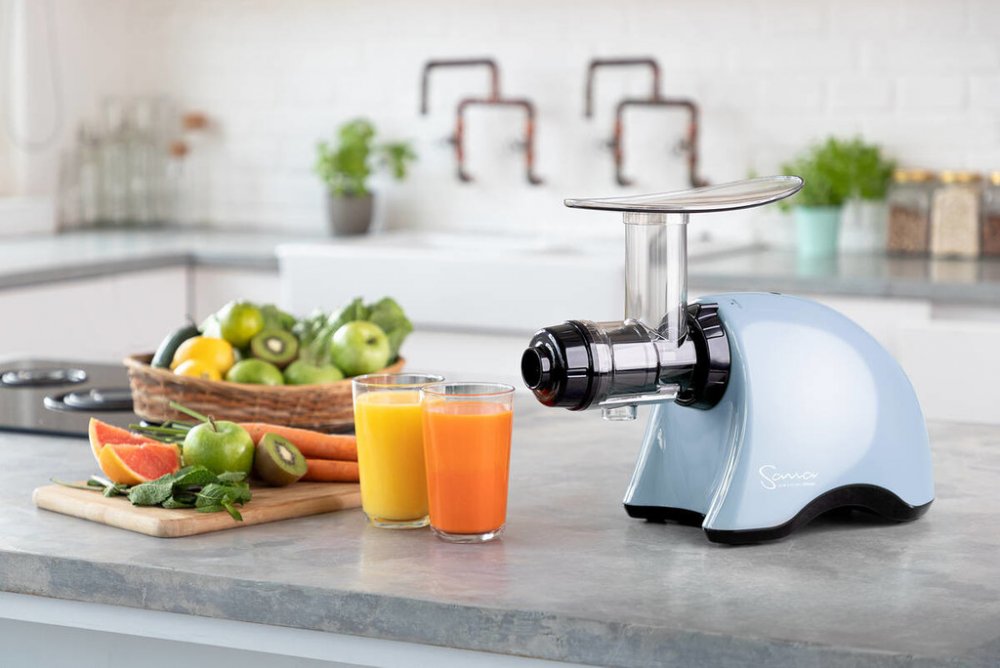 Domácí šnekový odšťavňovač Sana Juicer 707 s větším plnicím otvorem a hrubým sítem je vyroben z BPA free materiálů. Unikátní odšťavňovač Sana EUJ-707 pro lisování ovoce a zeleniny splní požadavky i těch nejnáročnějších uživatelů. K odšťavňovači Sana EUJ-707 je navíc možné dokoupit i originální nástavec pro lisování oleje z olejnatých semínek, jako jsou slunečnice, len, mák nebo sezam. Dejte předno...