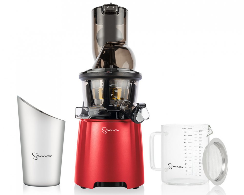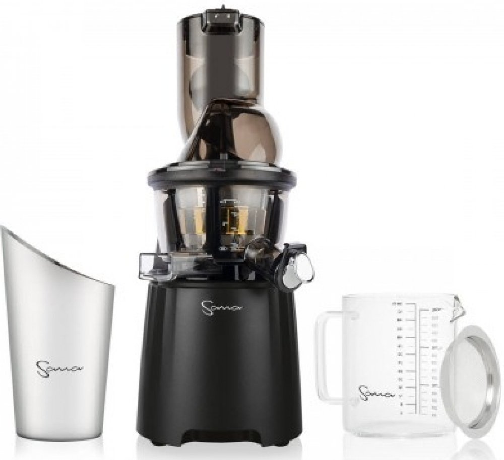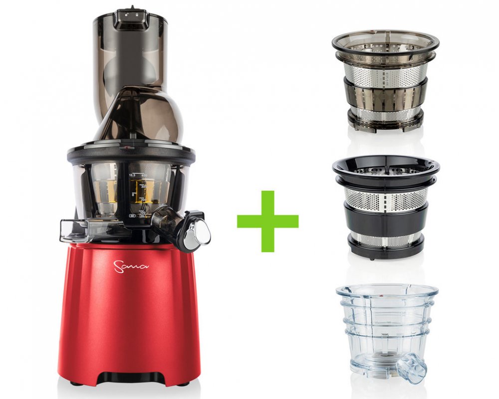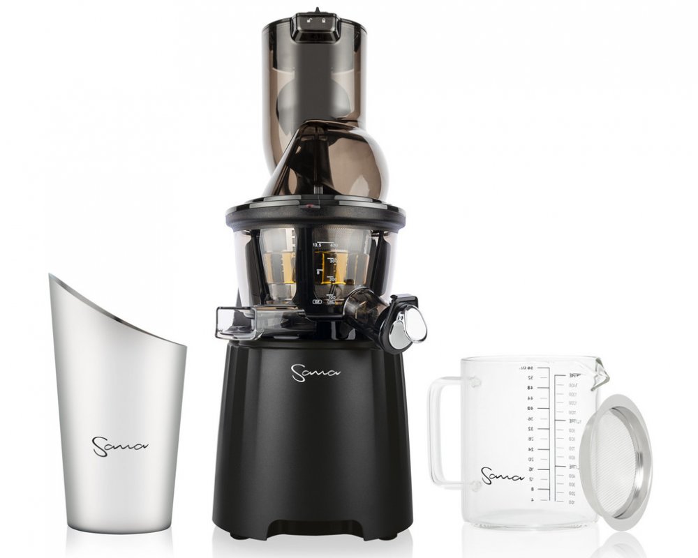 Vertikální odšťavňovač Sana 868 má velký plnicí otvor, do kterého se vejdou i celá menší jablka! Plnicí otvor je opatřený praktickým propadlem pro pohodlné vkládání surovin. Součástí balení jsou 4 druhy sít, která z něj dělají skutečně univerzální odšťavňovač. Zpracujete s ním mnoho druhů ovoce a zeleniny, připraví vám i sorbet z mraženého ovoce nebo smoothie. V balení najdete extra velkou skleněnou nádobu na šťávu 1500 ml, vyrobenou z tvrzeného borosilikátového skla a velkou nerezovou nádobu na odpad.