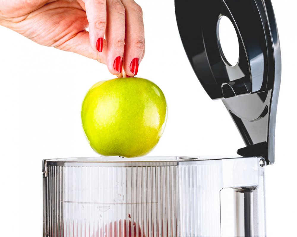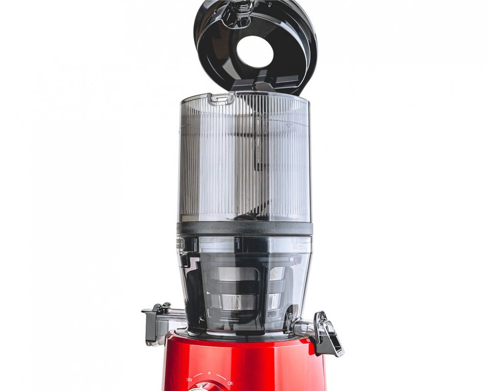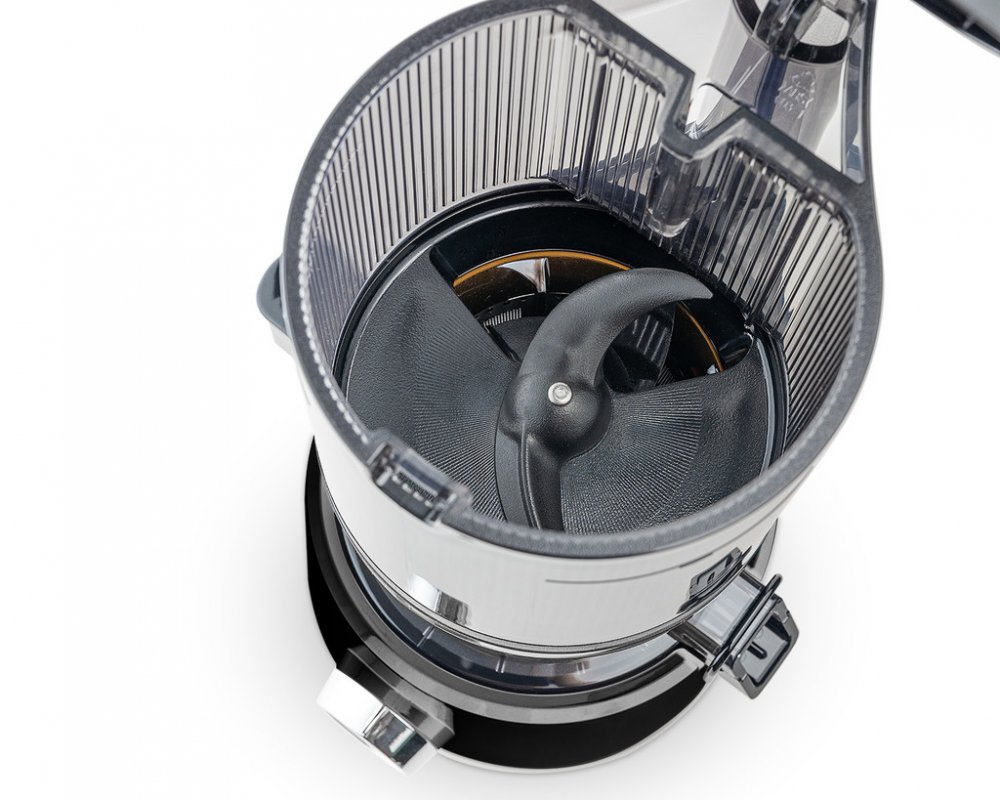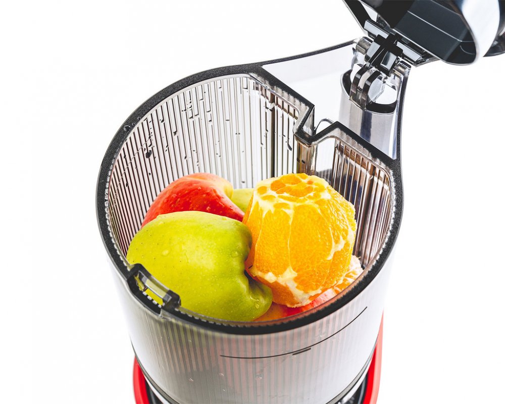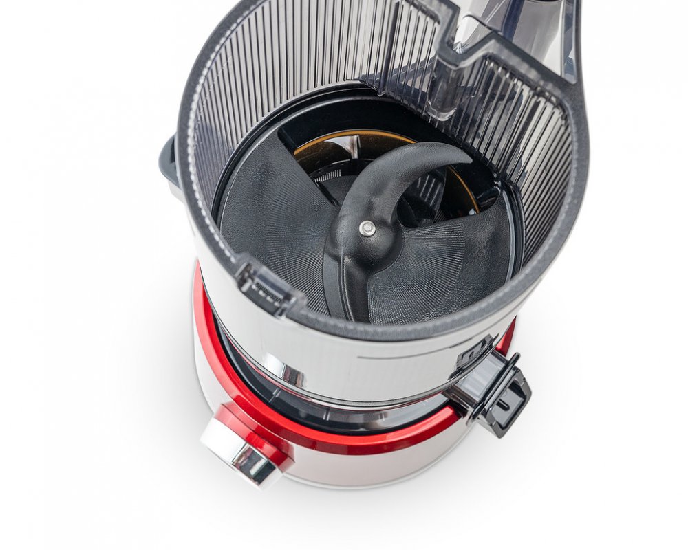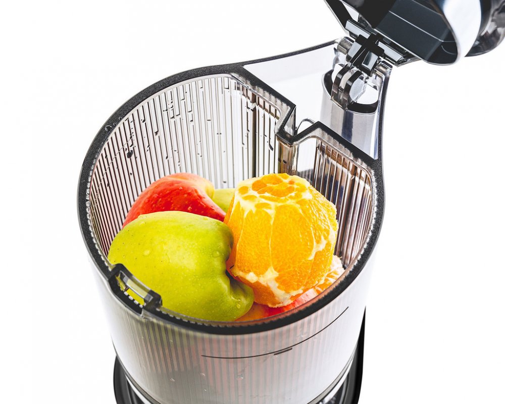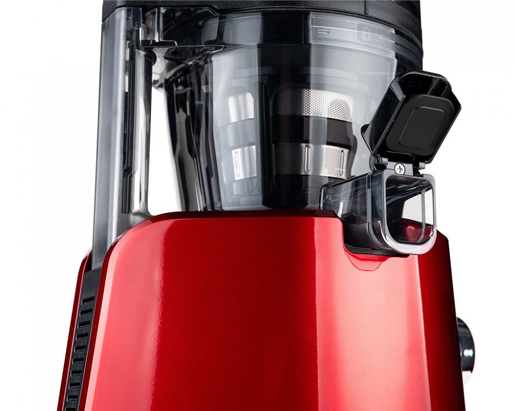 - Větší pohodlí: Unikátní automatizovaná násypka umožňuje uživatelům vkládat suroviny bez potřeby dávkování nebo pěchování. Toto usnadňuje a zrychluje celý proces odšťavování.