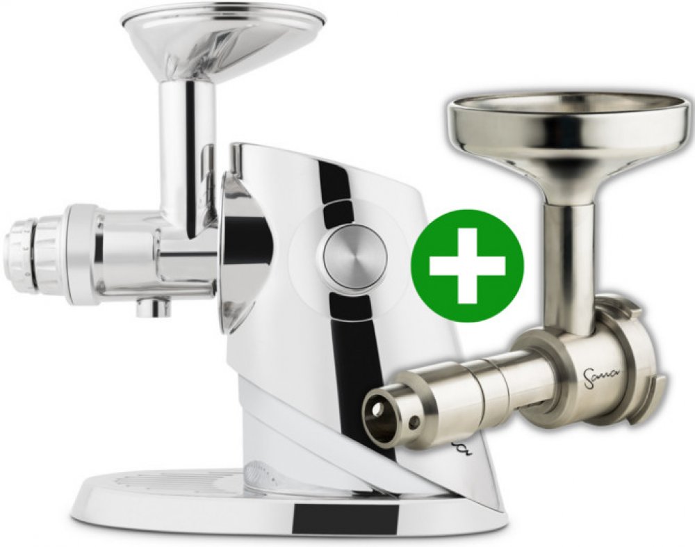 Celonerezový odšťavňovač Sana Ultimate 929 vychází z technologie horizontálních šneků, které jsou populární svou jednoduchostí, univerzalitou, výkonností, kvalitou a životností. Je vybaven kvalitním Brushless motorem pro 24h provoz se čtyřmi rychlostmi. Odšťavňujte veškeré ovoce, kořenovou a listovou zeleninu, bylinky a pochutnejte si na čerstvé šťávě nejlepší kvality. S odšťavňovačem připravíte i mražený sorbet, mandlové mléko nebo ořechové máslo. Mytí v myčce, kvalitní materiály a precizní zpracování.