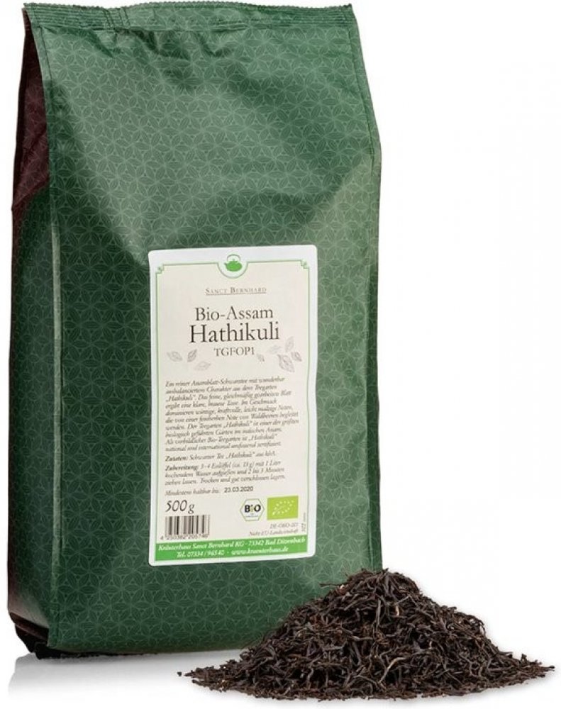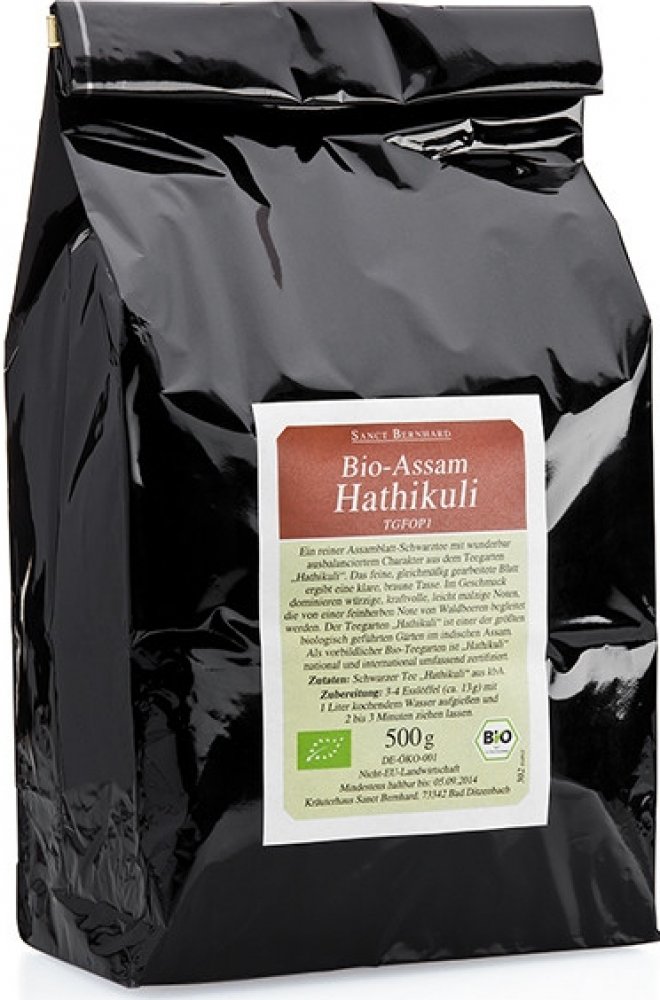 Hmotnost: 500 g / výborná cena / ekonomické balení Čisté listy černého čaje Assamu (Assam je označení čaje pěstovaného v Indické oblasti Assam) s dobře vyrovnanou strukturou z čajové plantáže Hathikuli, zaručují nejvyšší kvalitu . Tento čaj má tónovaný list, což vede k úžasnému hnědému zbarvení při jeho vaření. Chuť je pikantní, silná, s hladkými sladově čistými tóny, které jsou doprovázeny jemnou vůní lesních plodů. Čajová zahrada "Hathikuli" je jednou z největších organických (BIO) čajových zahrad v Assamu. BIO certifikace je prováděná podle národních a mezinárodních norem. Výrobek je certifikován u kontrolní organizace ABCERT AG, registrační číslo CZ-BIO-002. Složení: černý čaj "Hathikuli", BIO certifikovaný. Příprava: na přípravu čaje použijte 3-4 zarovnané čajové lžičky na 1 litr vody. Zalijte vroucí vodou a nechte vyluhovat po dobu 2-3 minut, poté sceďte. Vychutnejte si svůj šálek čaje.