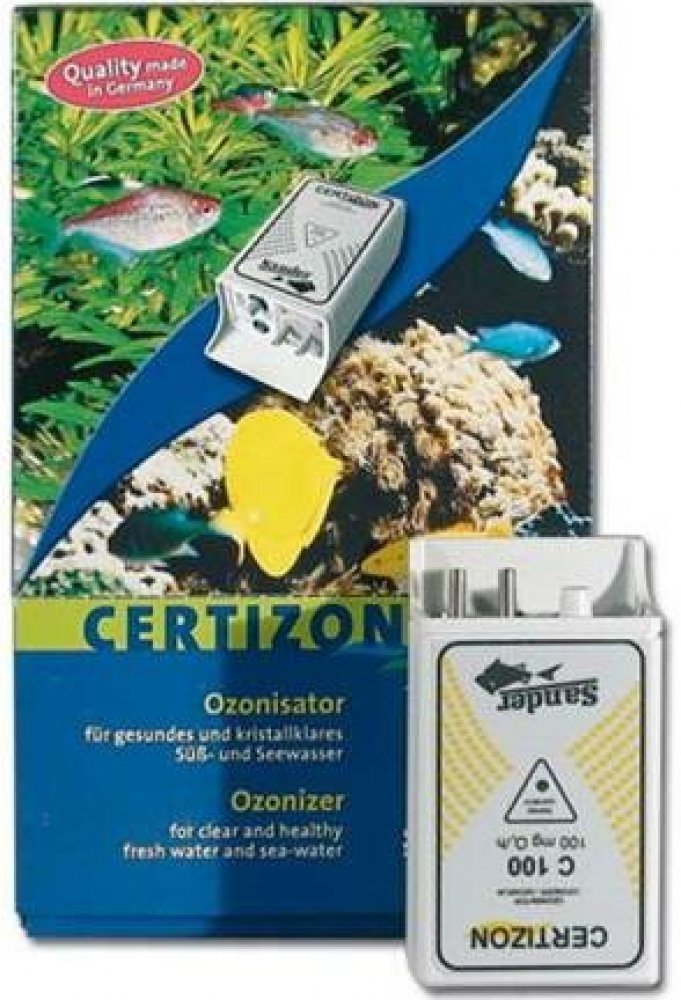 Ozonizer Sander Certizon zvyšuje výkon odpěňovačů a biologických filtrů. Vytváří průzračné a zdravé vodní prostředí. Snižuje množství choroboplodných zárodků ve vodě, zátěž dusičnanem (NO3), dusitanem (NO2) a čpavkem (NH3). Zvyšuje redoxní potenciál a obsah kyslíku. Vhodný pro použití i ve skladkovodní akvaristice nebo zahradních jezírkách.