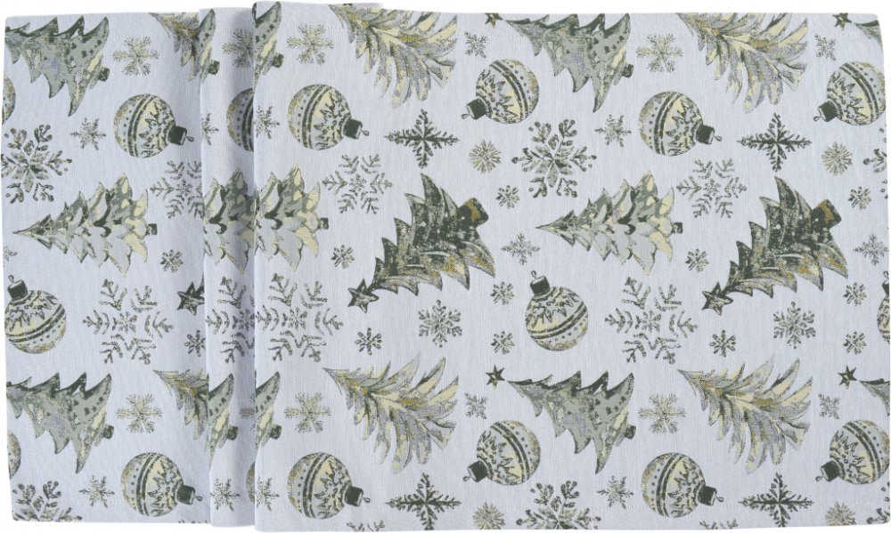 Žakárový běhoun na stůl v bílém provedení patří do vánoční kolekce Crystal Tree německé značky Sander table+home. Barva bílá č. 30: white. Šířka 50 cm, délka 140 cm.
