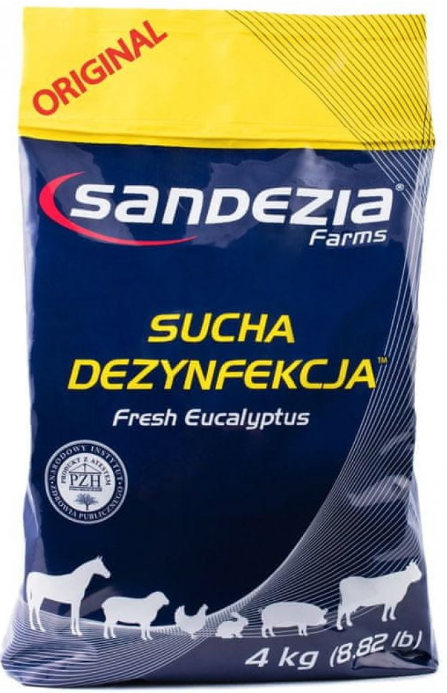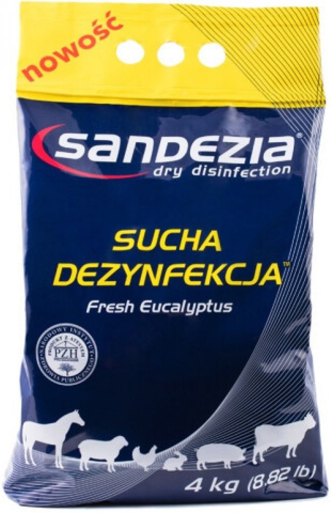 Sandezia suchá dezinfekce je přípravek určený k dezinfekci obydlí pro hospodářská zvířata. Tento produkt efektivně eliminuje bakterie, viry, parazity a plísně. Ničí mouchy a další hmyz v larválním stádiu nebo výrazně snižuje jejich počet.