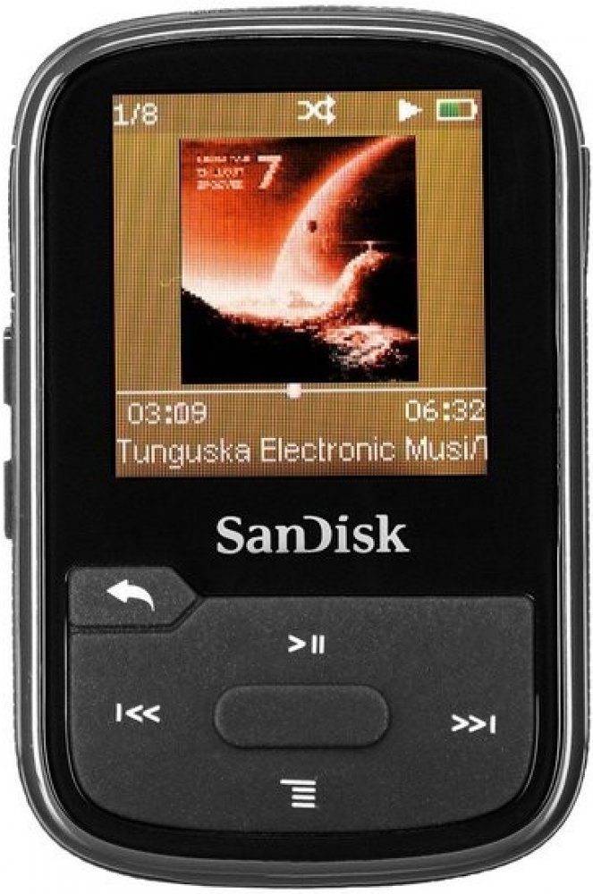 SanDisk Clip Sport Plus The affordable, lightweight SanDisk® Clip Sport Plus MP3 player gives you the freedom and flexibility to work out the way you want. With its durable, water-resistant design, it’s ready for a muddy mountain bike ride or a trail run in the rain. It also features Bluetooth wireless technology so it pairs with Bluetooth wireless technology headsets or speakers. A 16GB5 capacity means that it’s big enough to store up to 4000 songs, but it also has a built-in FM radio3. And it’s small enough to clip to your clothes or gear, so you can stop worrying about your device and focus on your workout. Water-resistant and durable - Durable and water-resistant, the SanDisk Clip Sport Plus MP3 Player stands up to tough workout conditions—rain or shine. Bluetooth® wireless technology for wireless listening - Pair the SanDisk Clip Sport Plus MP3 Player with your favorite Bluetooth wireless headsets for even more freedom in your workout. Lightweight clip-on design - Clips on to your clothes or gear and stays put for a worry-free workout. Built-in FM radio - Tune in to your favorite FM stations or connect with the entertainment system at your gym. Plays up to 18 hours - With enough battery power to last for up to 18 hours on a single charge (wired headset), your SanDisk Clip Sport Plus player has the stamina to keep up with you for multiple workouts before it needs to recharge. Stores up to 4000 songs - 16GB capacity holds up to 4000 songs so that you’ve got enough music to carry you across the finish line or through your final reps. TECHNICAL SPECIFICATIONS Capacity 32 GB Interface USB 2.0USB 3.0 Connector Micro B Dimensions (L x W x H) 17.27 x 44.2 x 66.04 mm .