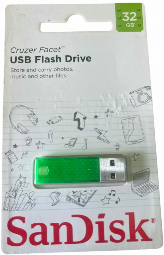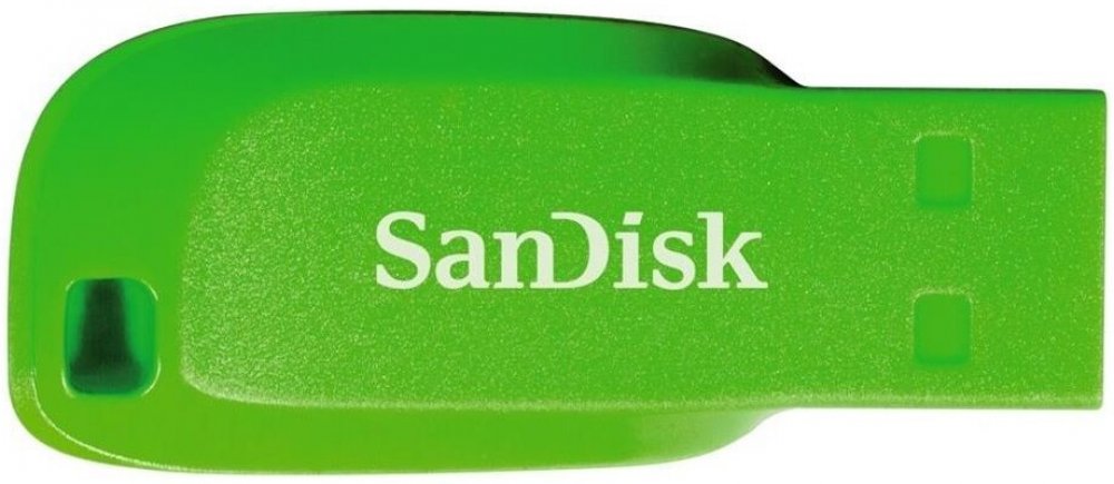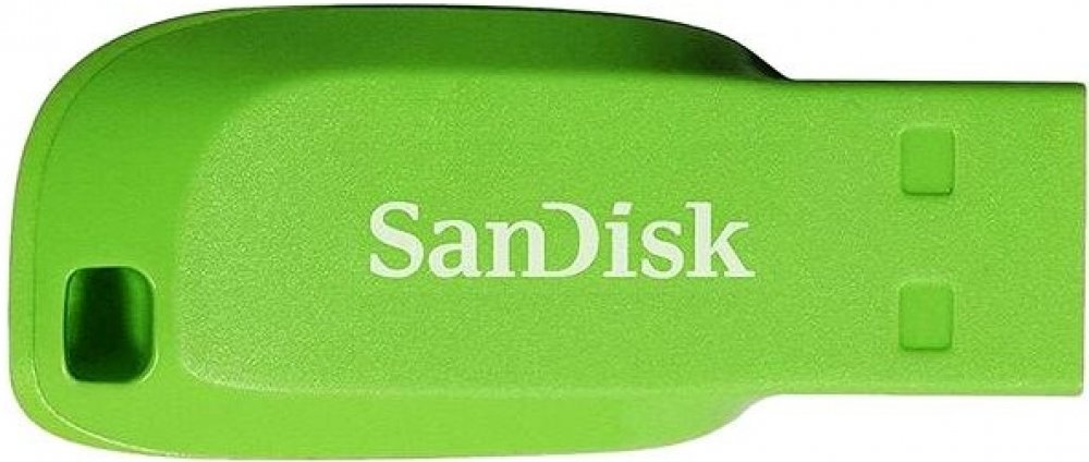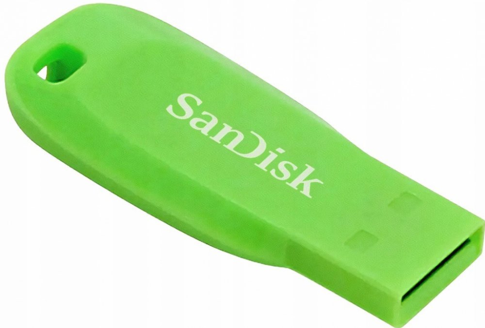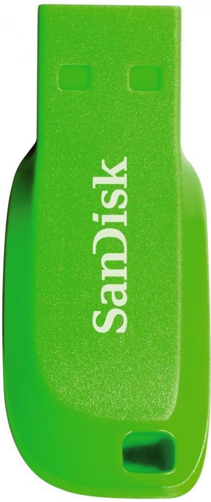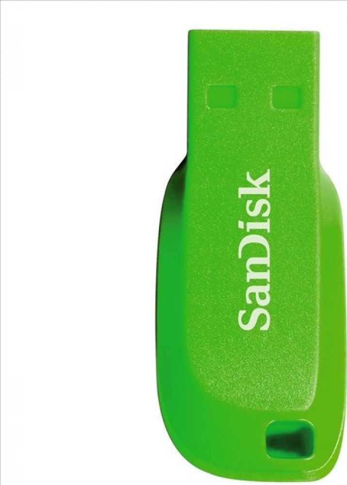 SanDisk 32 GB USB 2.0 18 MB/s 6 MB/s USB-A s jedním konektorem se základní rychlostí 12 g plastové zelené 126 mm 14 mm 76 mm se standardní odolností