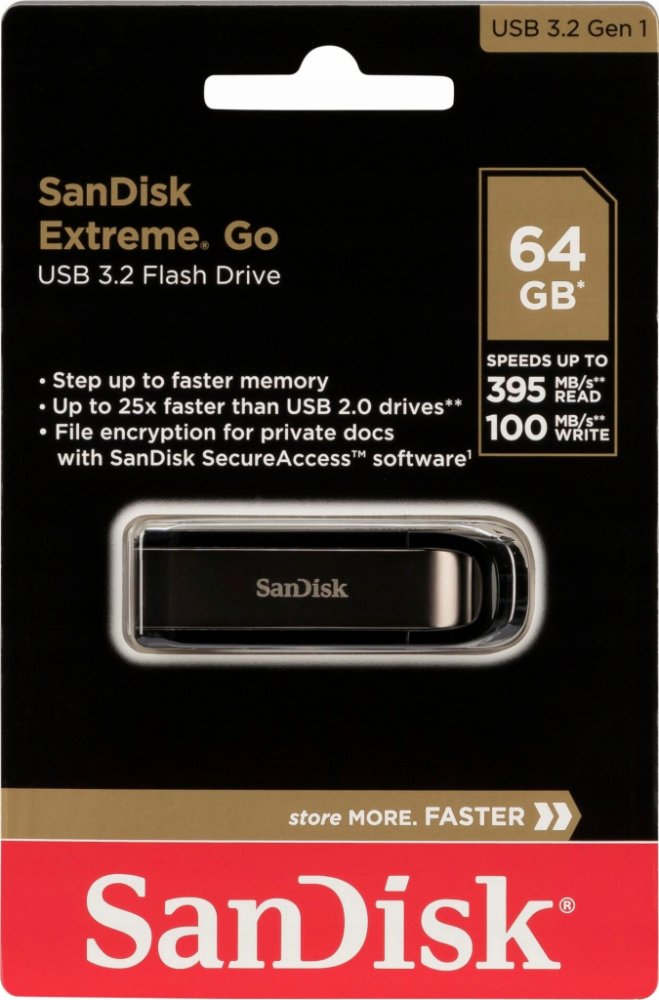 SanDisk Extreme® Go USB 3.2 Drive Access and move critical content fast to stay ahead of tight deadlines. Success means being able to perform at peak speed and efficiency wherever, whenever. Speeds up to 400MB/s** read and up to 240MB/s** write (256GB*) plus elite reliability deliver a smooth workflow so you can work your way without slowing down. It lets you keep your data under your control so y...