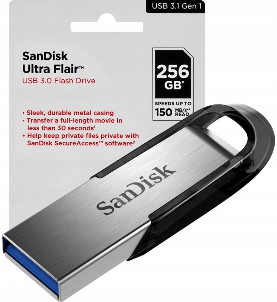 - obsahuje software SanDisk SecureAccess (je potřeba stáhnout): chrání Vaše soukromé soubory zašifrováním a ochranou heslem (128-bit AES šifrování)