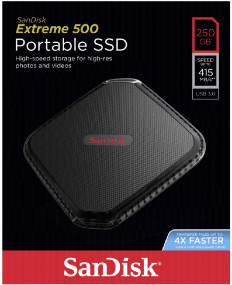 Sandisk Extreme 500. Kapacita disku SSD: 250 GB, Rychlost čtení: 415 MB/s, Rychlost zápisu: 365 MB/s. USB verze: 3.0 (3.1 Gen 1). Barva: Černá. Podporované operační systémy Windows: Windows 7 Enterprise,Windows 7 Enterprise x64,Windows 7 Home Basic,Windows 7 Home Basic..., Podporované operační systémy Mac: Mac OS X 10.4 Tiger, Mac OS X 10.5 Leopard, Mac OS X 10.6 Snow Leopard, Mac OS X 10.7 Lion, ...
