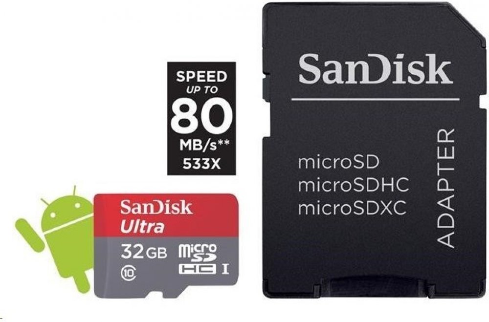 Tento model karty SanDisk Micro Secure Digital (SDHC) Ultra UHS-1 nabídne vysokou kapacitu 32GB a díky vysokým rychlostem je tato karta vhodná pro všechna moderní zařízení, která kladou značné nároky na záznamová média a podporují tento typ karet. Součástí karty je navíc také praktický adaptér na standardní velikost SD.