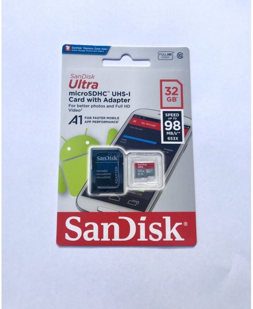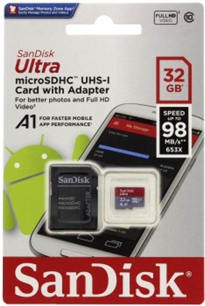 32 GB SanDisk microSD 98 MB/s 10 MB/s Class 10 UHS-I U1 A1