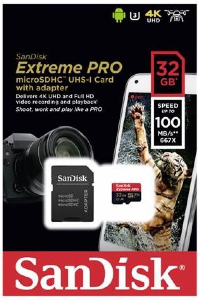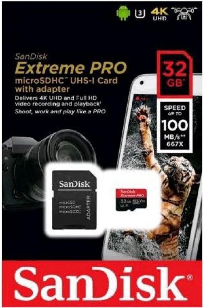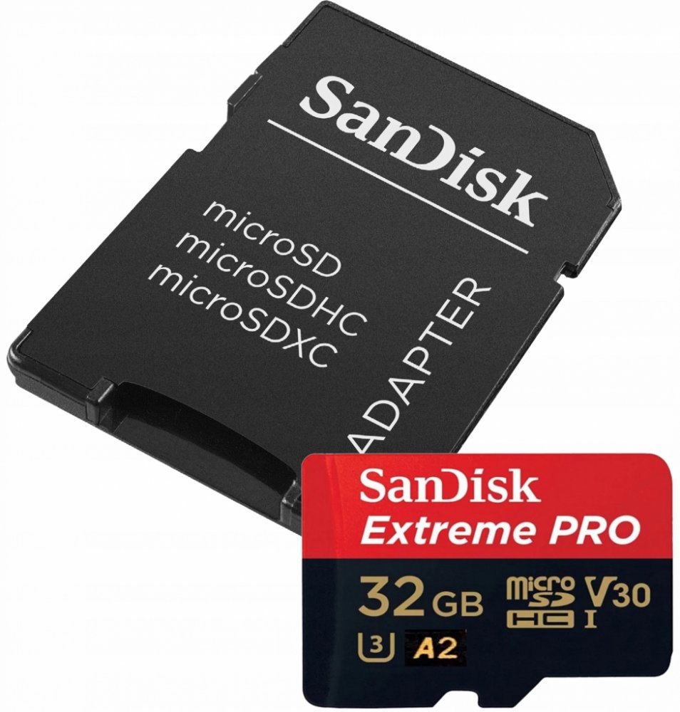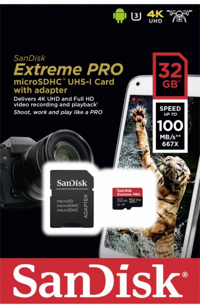 32 GB SanDisk microSD 100 MB/s 90 MB/s Class 10 UHS-I U3 V30 A1