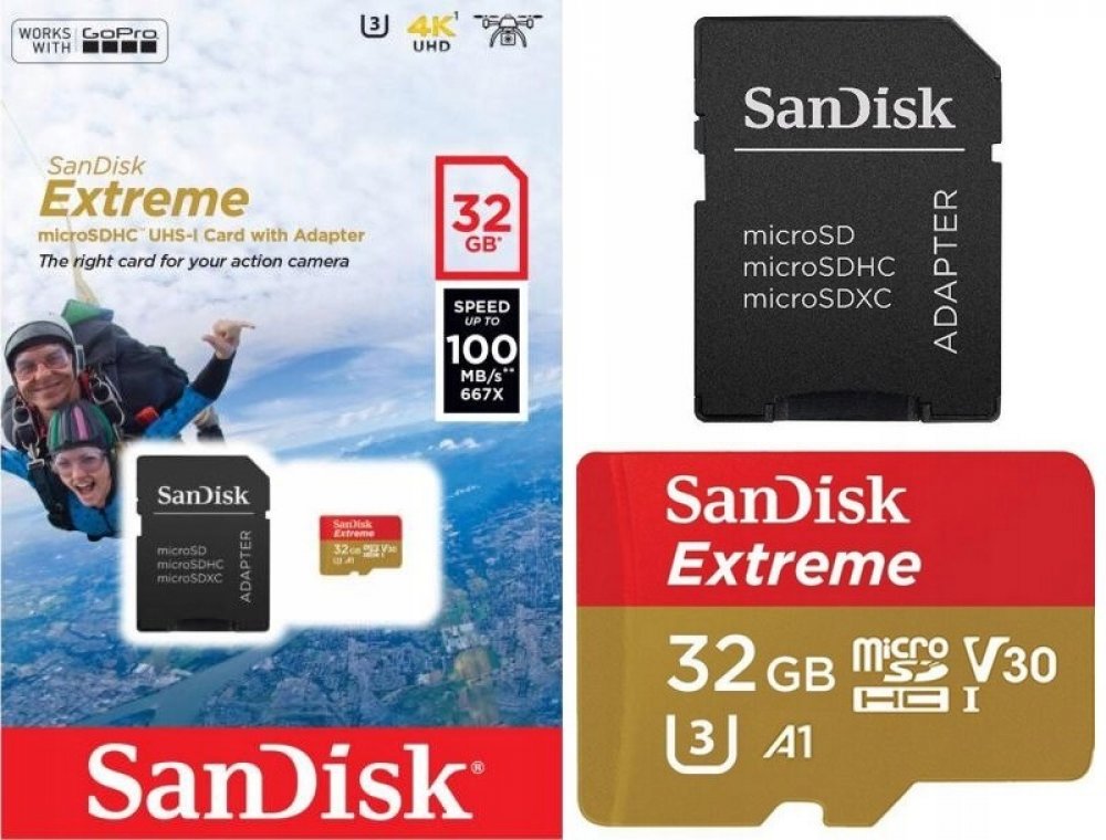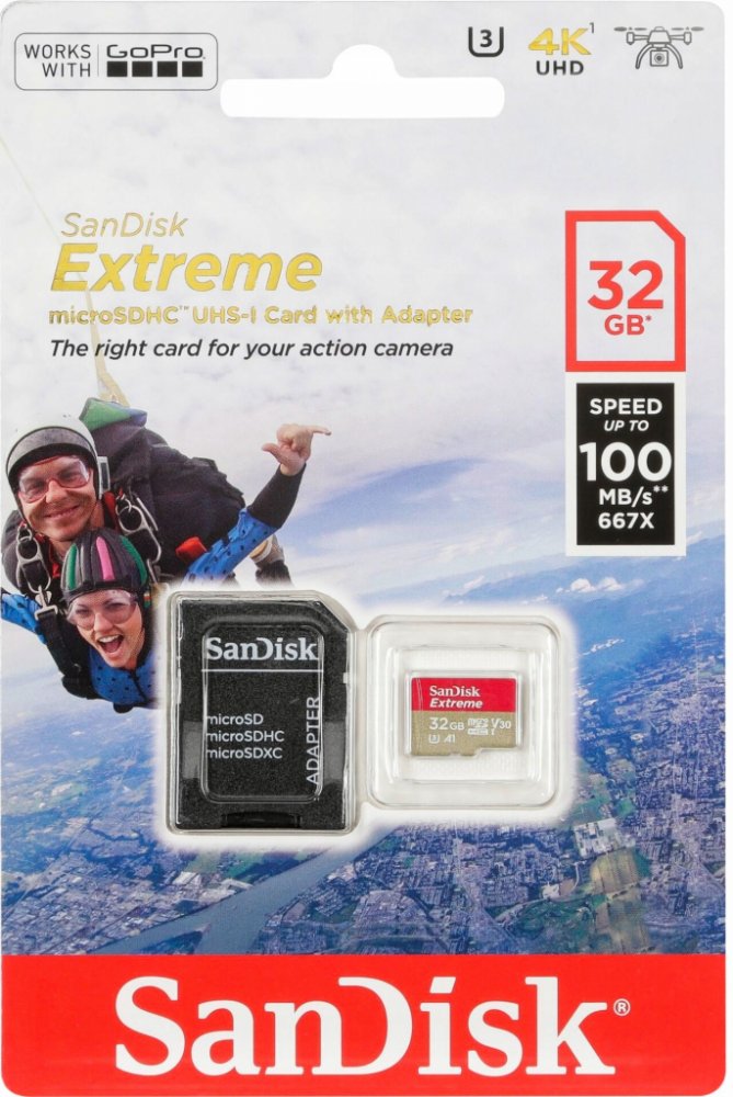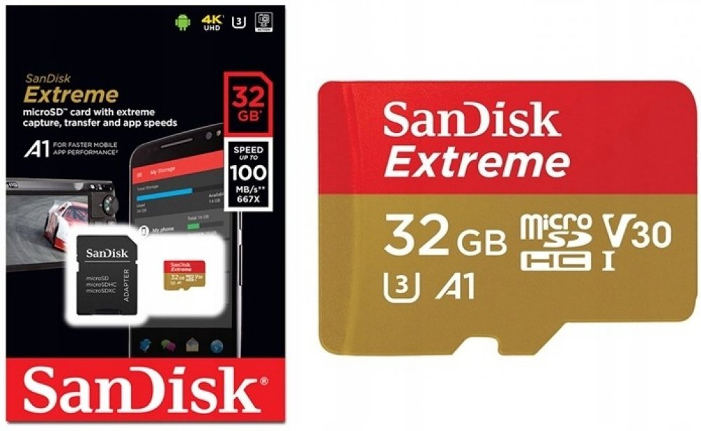 32 GB SanDisk microSD 100 MB/s 60 MB/s Class 10 UHS-I U3 V30 A1