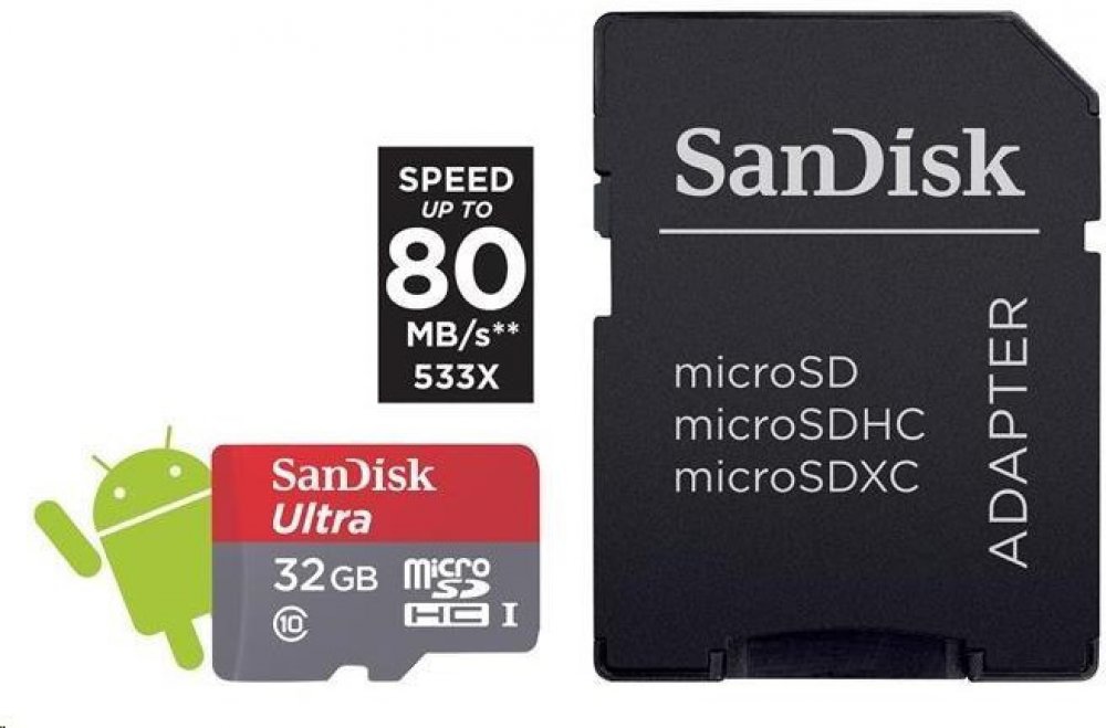 - 1x 32GB paměťová microSDHC karta Sandisk