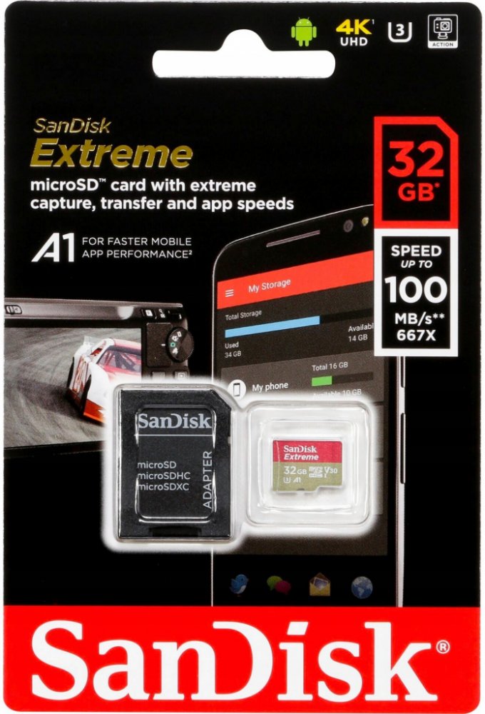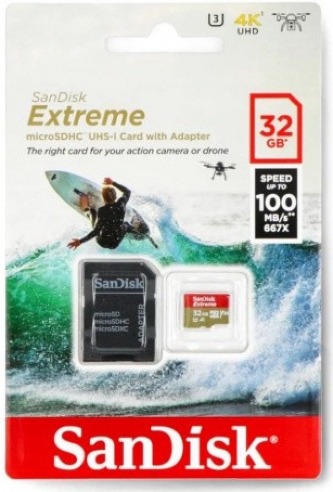 32 GB SanDisk microSD 100 MB/s 60 MB/s Class 10 UHS-I U3 V30 A1