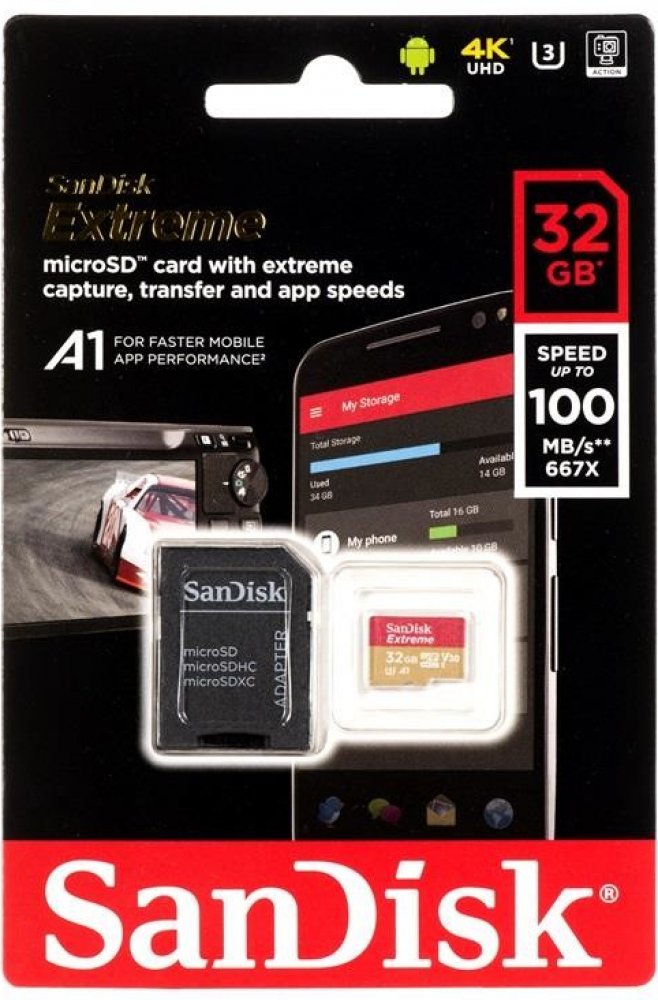 - Paměťová karta SanDisk Extreme MicroSDHC nabízí interní kapacitu 32 GB