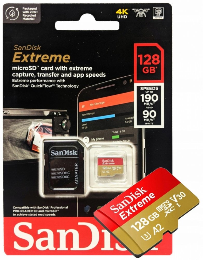 128 GB SanDisk microSD 160 MB/s 90 MB/s Class 10 UHS-I U3 V30