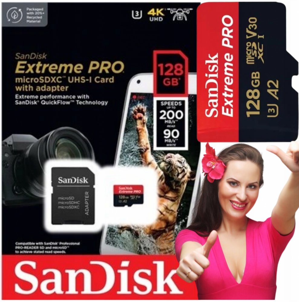 Extrémní rychlost zajišťuje rychlý přenos dat, vysoký výkon aplikací a možnost rozlišení 4K UHD. Tato vysoce výkonná microSD karta je ideální pro telefony se systémem Android™, akční kamery nebo drony. Zvládne nahrávání videa v rozlišení 4K UHD, rozlišení Full HD i fotografie ve vysokém rozlišení. Superrychlá paměťová karta SanDisk Extreme® PRO microSDXC™ čte rychlostí až 200 MB/s a zapisuje rychlostí až 140 MB/s. Nabízí také výkonnostní třídu A2, která zajišťuje vysoký výkon aplikací a usnadní vám tak používání telefonu.