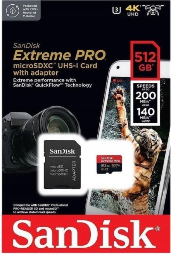 Karta SANDISK EXTREME PRO microSDXC 512GB 200/140 MB/s A2 C10 V30 UHS-I U3.