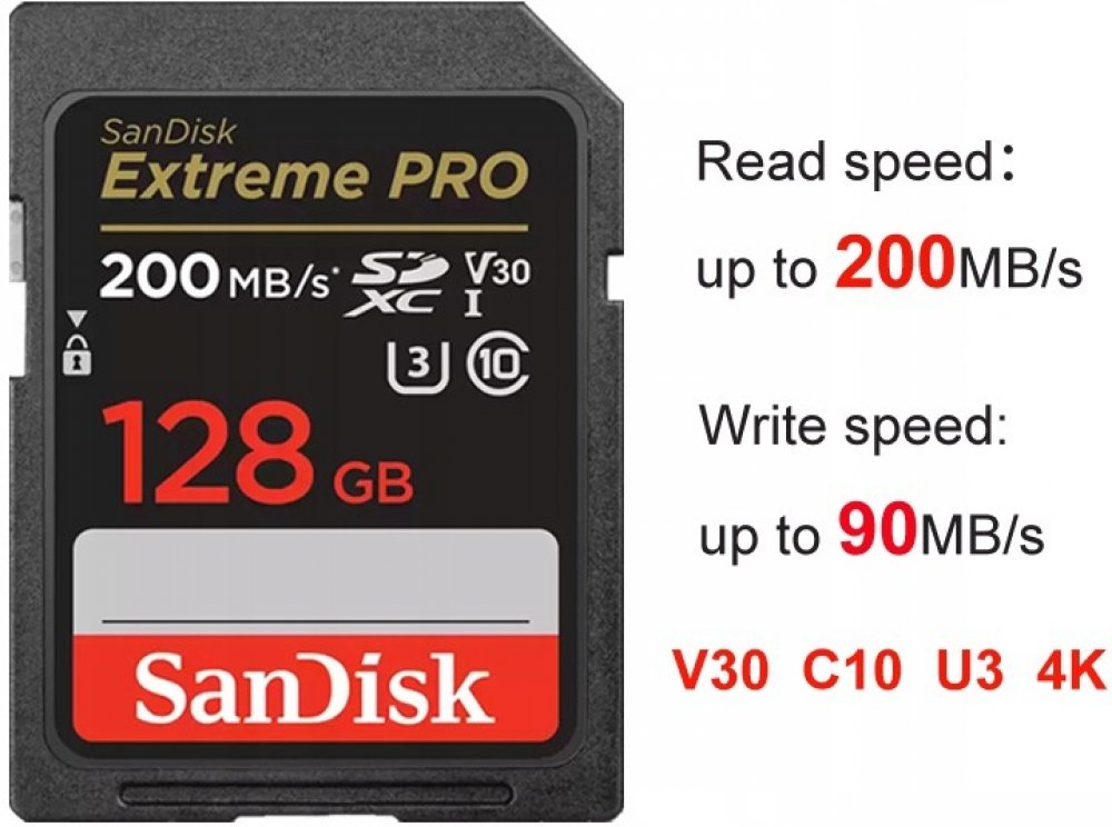 128 GB SanDisk SDXC 200 MB/s 90 MB/s Class 10 UHS-I U3 V30