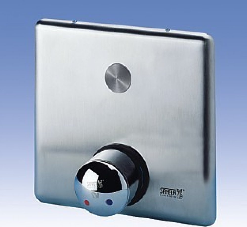 SLS 02PB - obj. č. 12023 - nerezový kryt s elektronikou pro bateriové napájení, nerezová instalační krabice se zabudovaným elektromagnetickým ventilem, míchací baterií a šroubením, lithiová napájecí baterie SLA 09