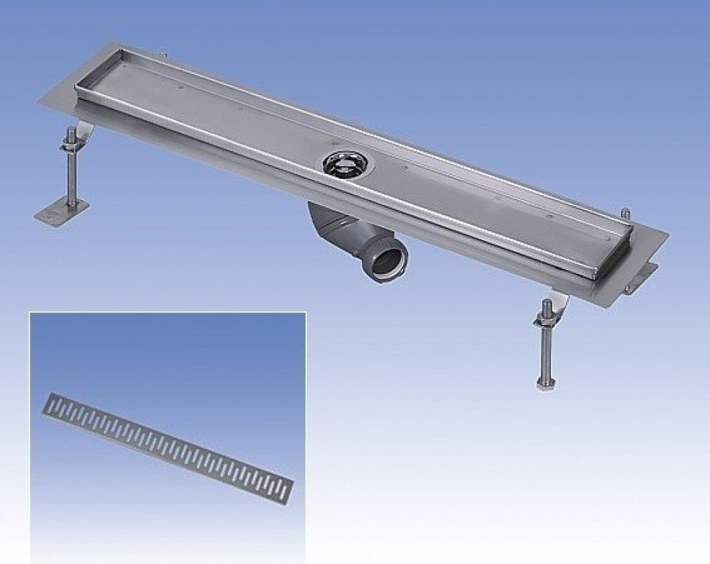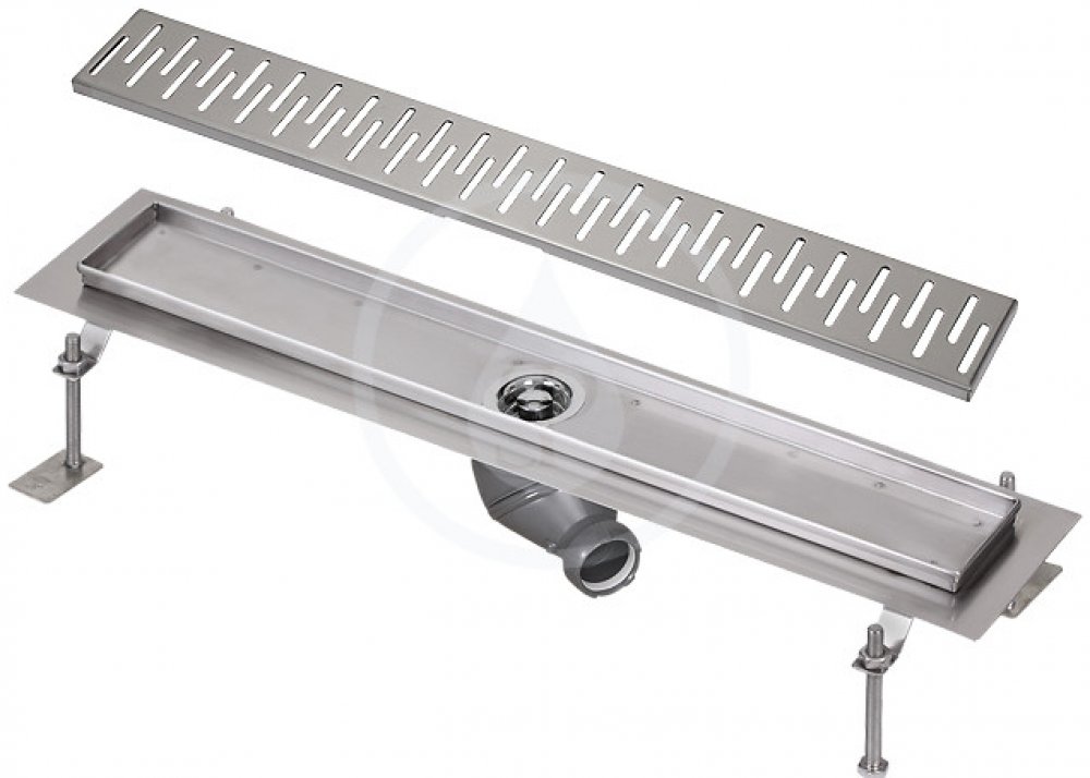 SLKN 04C - obj. č. 69043 - žlábek, mřížka (krycí rošt), sifon se zápachovou uzávěrou, stavitelné šrouby 4x M10, háček pro vyjmutí mřížky