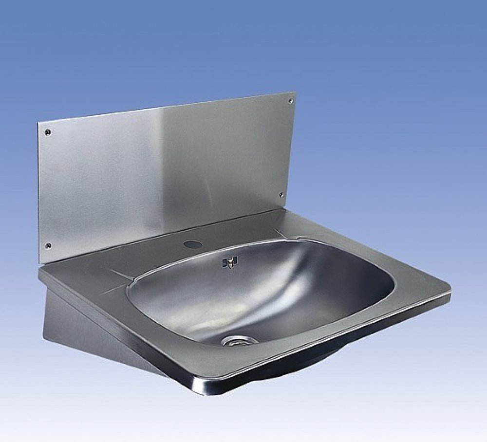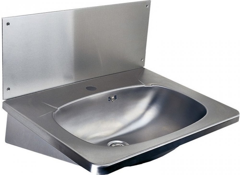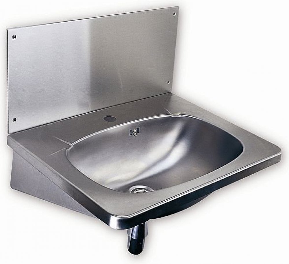 Nerezové závěsné umyvadlo s přepadem se zadní stěnou a otvorem pro baterii