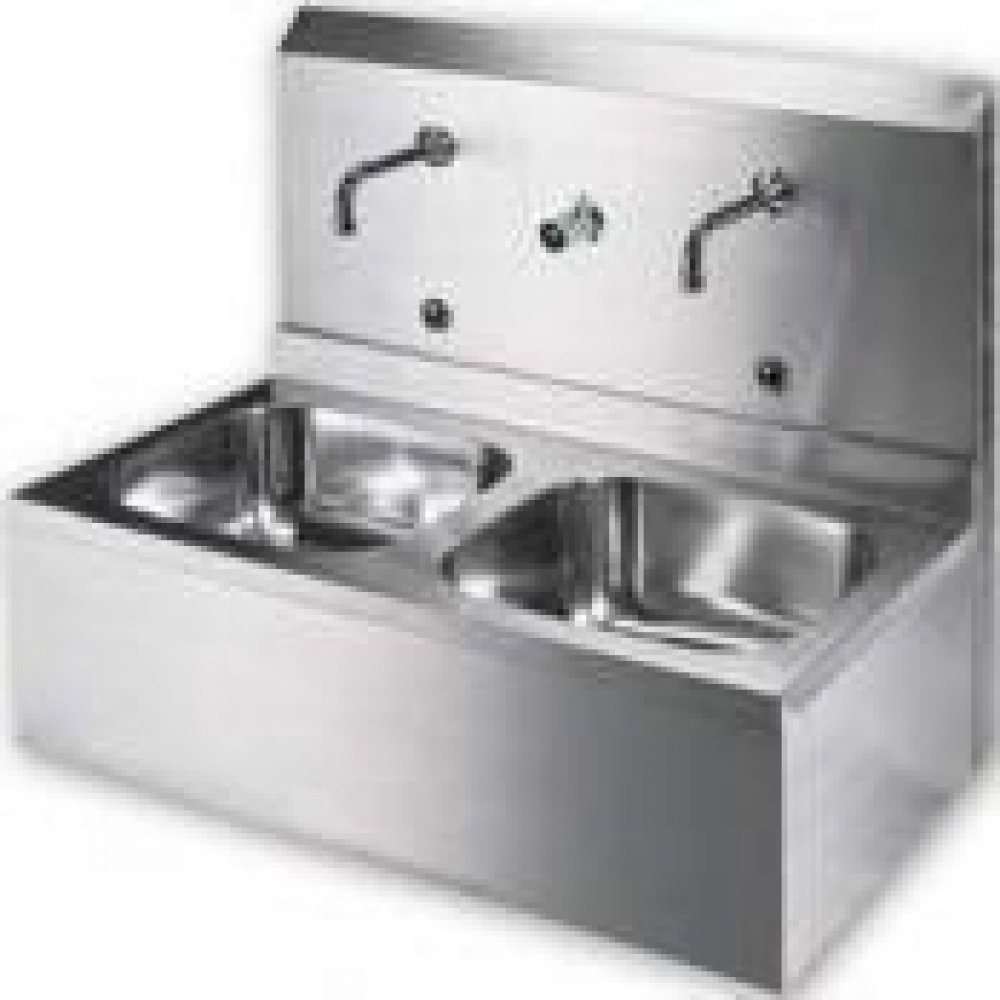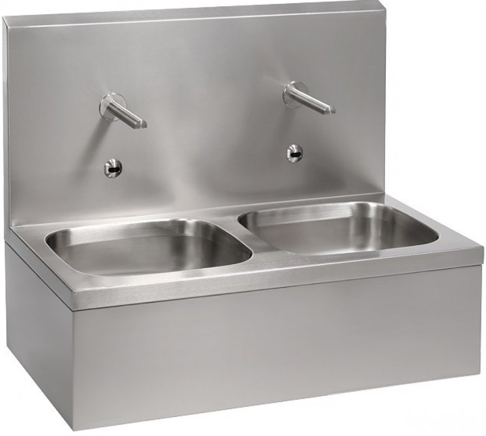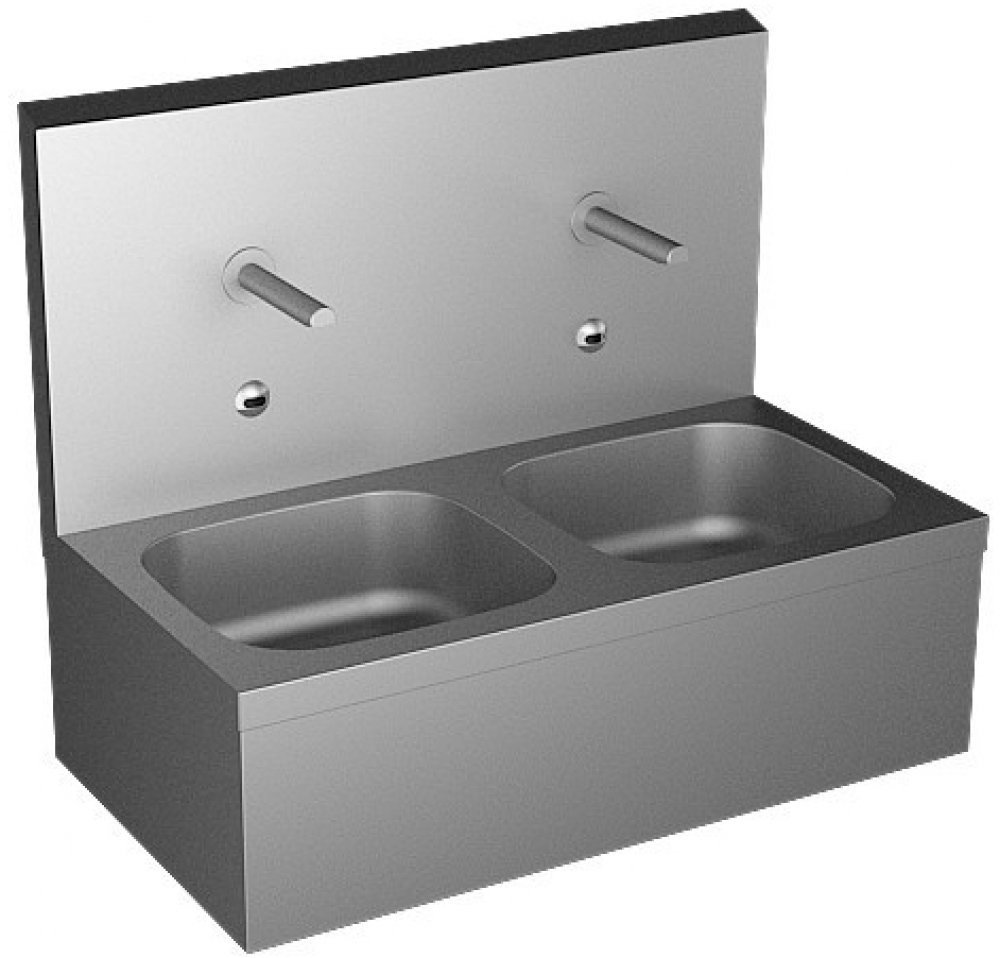 • závěsný nerezový dvojdřez se zadní stěnou a integrovanou elektronikou