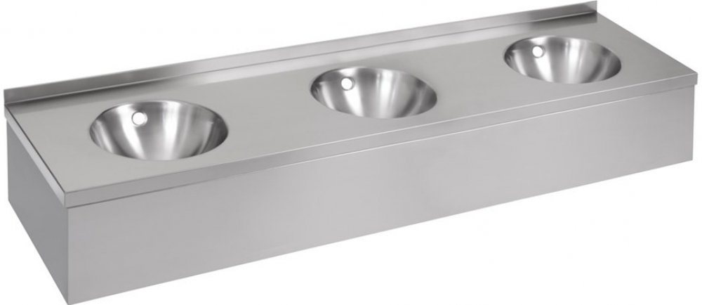 • závěsné nerezové trojumyvadlo s opláštěním a přepadem, délka 1800 mm