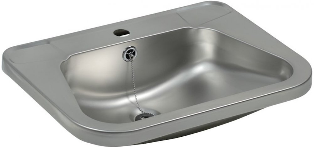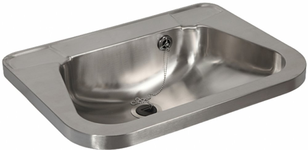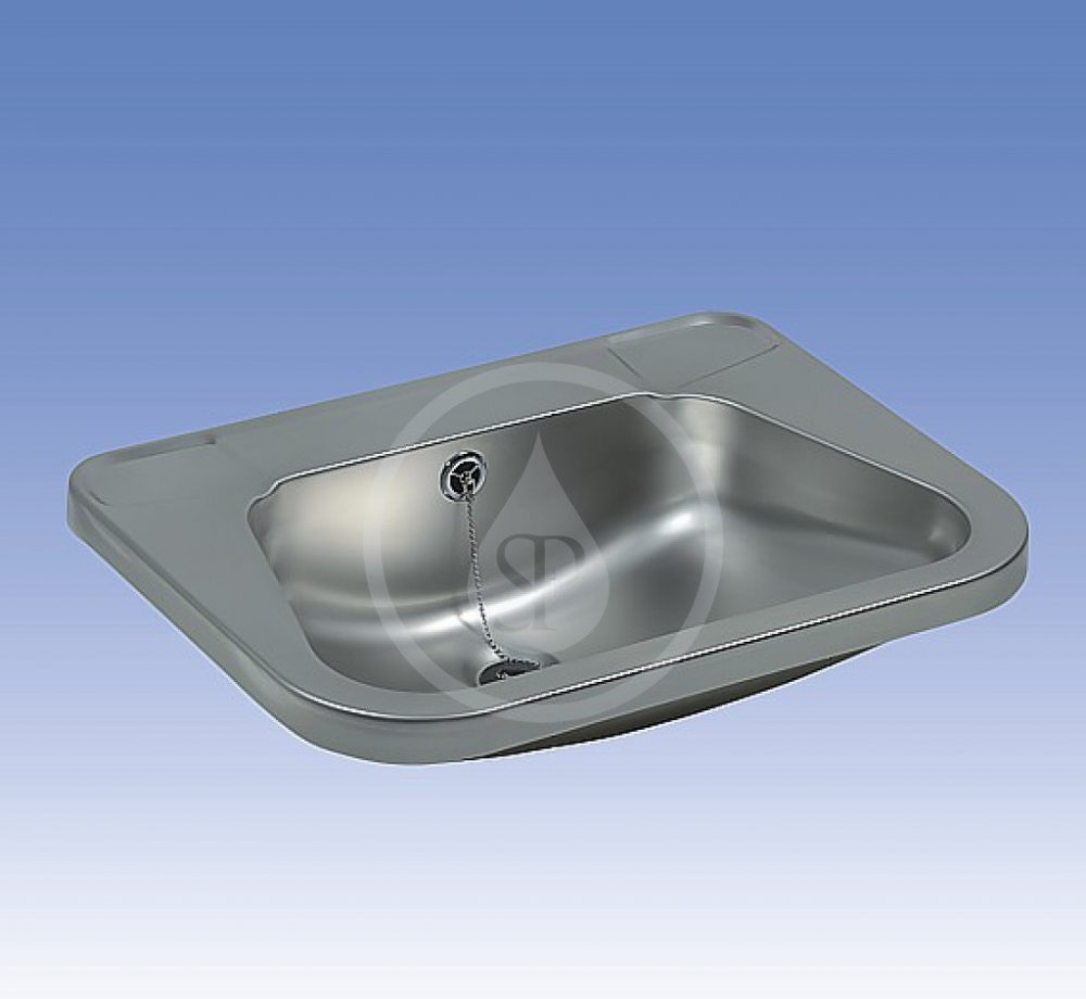 Nerezové umyvadlo, konzoly, přepadová sada včetně zátky a řetízku, sifon, úchytová sada, bez otvoru pro baterii
