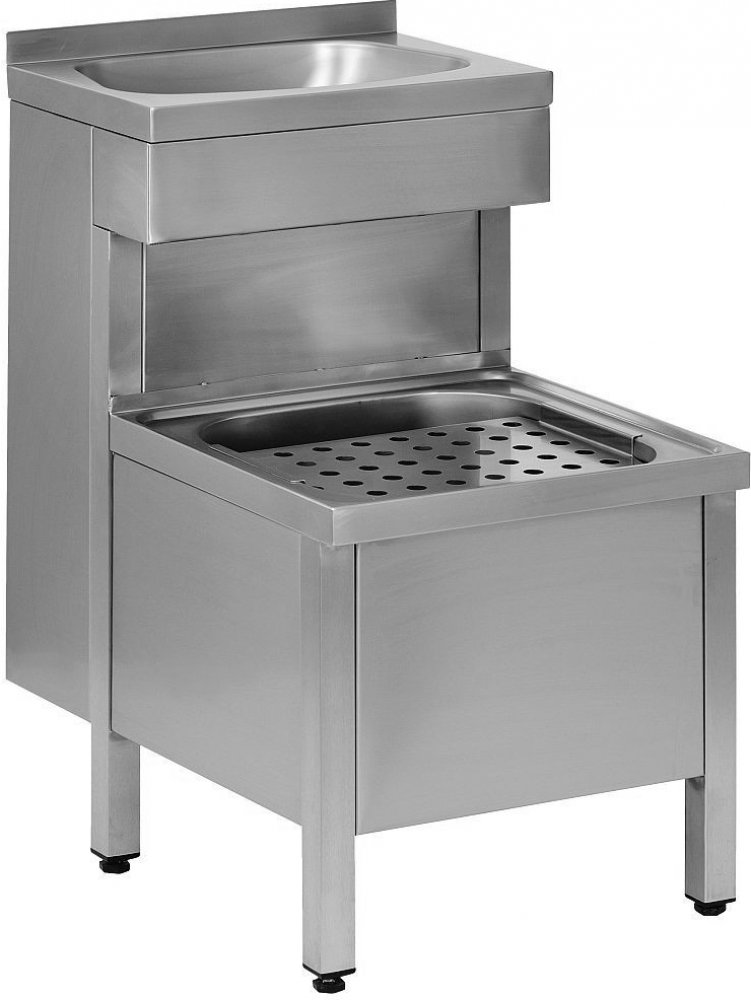 - SLVN 02 - samostatně stojící nerezová kombinovaná výlevka s umyvadlem a mřížkou, je určena pro postavení do prostoru, bez otvoru pro baterii (možnost jeho zhotovení na objednávku)