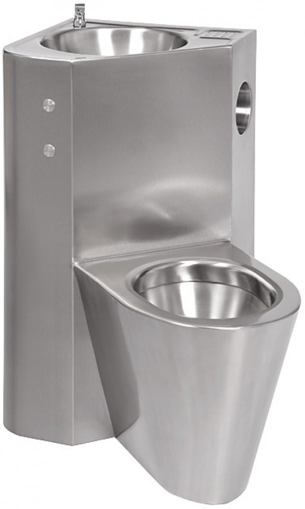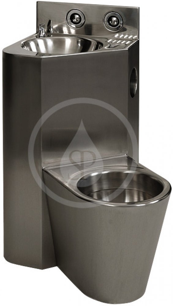 SLWN 08P - obj. č. 94082 - nerezový kompaktní set WC s umyvadlem do rohu, 2x tlačný ventil, umyvadlová armatura, 6x závitová tyč M10