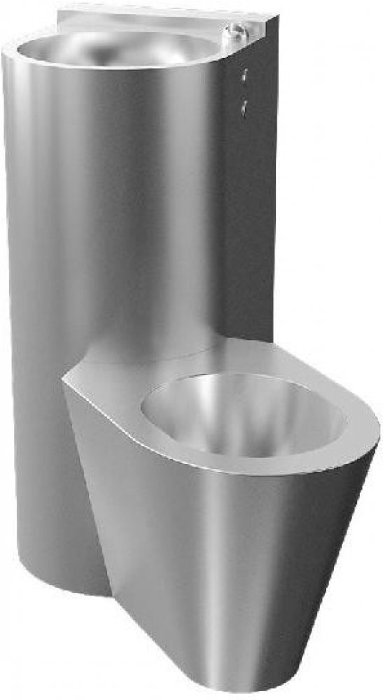 Piezo antivandalový nerezový set WC s umyvadlem do rohu antivandalové provedení použití pro věznice kompaktní set WC s umyvadlem a umyvadlovou armaturou piezo tlačítko na ovládání umyvadlové armatury piezo tlačítko pro splachování WC SLWN 08PP - WC stojící na zemi vpravo vyztužené polyuretanem (snížená hlučnost, zvýšená pevnost) montáž přes závitové tyče (M10, délka 190 mm), z druhé strany stěny r...