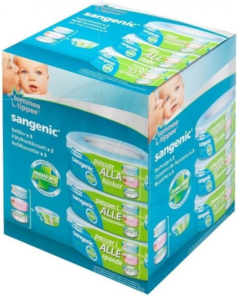 Univerzální náhradní kazety pro všechny typy košů Tommee Tippee - 3 kusy v balení. Nová Tommee Tippee Sangenic náhradní kazeta je vhodná pro všechny koše na pleny od výrobce Tommee Tippee (Sangenic Nursery Essentials, Sangenic Plus, Nappy, Nappy Maxi). Kazeta má anti-bakteriální vrstvu, která nepropustí bakterie ani zápach - kazeta poskytuje bezkonkurenční ochranu proti zápachu a zneškodní 99% bak...
