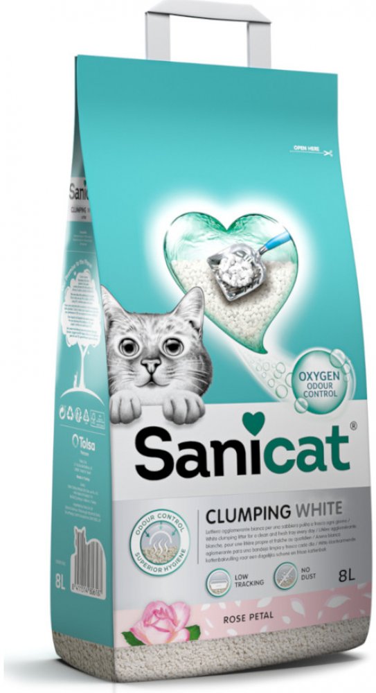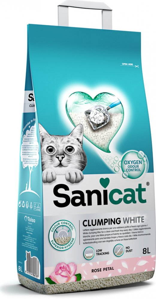 Stelivo Sanicat Clumping White Rose má obzvláště vysokou hrudkující schopnost. Je vyrobeno ze 100% přírodního bentonitu a obohaceno o přírodní sílu aktivního kyslíku. Zvláštností tohoto materiálu je, že velmi dobře váže pachy a je mimořádně vydatný. Tato podestýlka pro kočky může vázat až 250 % své vlastní hmotnosti. Drsný povrch zrn zároveň zabraňuje jejich ulpívání na tlapkách kočky. Při vázání kapaliny se vytvoří malé ploché hrudky. Ty jsou obzvláště pevné, což usnadňuje jejich vyjmutí ze zbytku podestýlky. Kromě toho stelivo také nevytváří prach, což pomáhá udržovat prostředí toalety čisté. Díky přírodnímu složení je Sanicat White Rose obzvláště šetrné k tlapkám koček. Neobsahuje žádné škodlivé chemické látky, které by mohly poškodit citlivou pokožku tlapek. Sanicat hrudkující stelivo White Rose: Obzvláště vysoká hrudkující síla S příjemnou vůní růží 100% přírodní: skládá se z přírodního bentonitu Hrubá zrna: méně ulpívají na tlapkách kočky Velmi dobrá vazba pachů a vlhkosti Může vázat až 250 % své vlastní hmotnosti Tvoří velmi pevné hrudky, které se nelepí ani nerozpadají Šetrné k tlapkám Bezprašné: udržuje prostředí odpadkového koše čisté Ekologický obal: papírový sáček s uchem pro přenášení