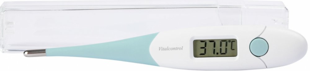 SANITAS Digitální teploměr SFT09 Měření teploty během 10 sekund Ohebná špička teploměru beze skla Bez rtuti Rozsah měření: 32,0 °C až 42,0 °C Přesnost měření: ± 0,1 °C při teplotě 35,5 °C–42,0 °C ± 0,2 °C při teplotě 32,0 °C–35,4 °C a 42,1 °C–42,9 °C Signální tón při ukončení měření Výstražný tón při naměření teploty nad 37,8 °C Extra velký displej Voděodolný (IP27) Lze dezinfikovat Transparentní ...