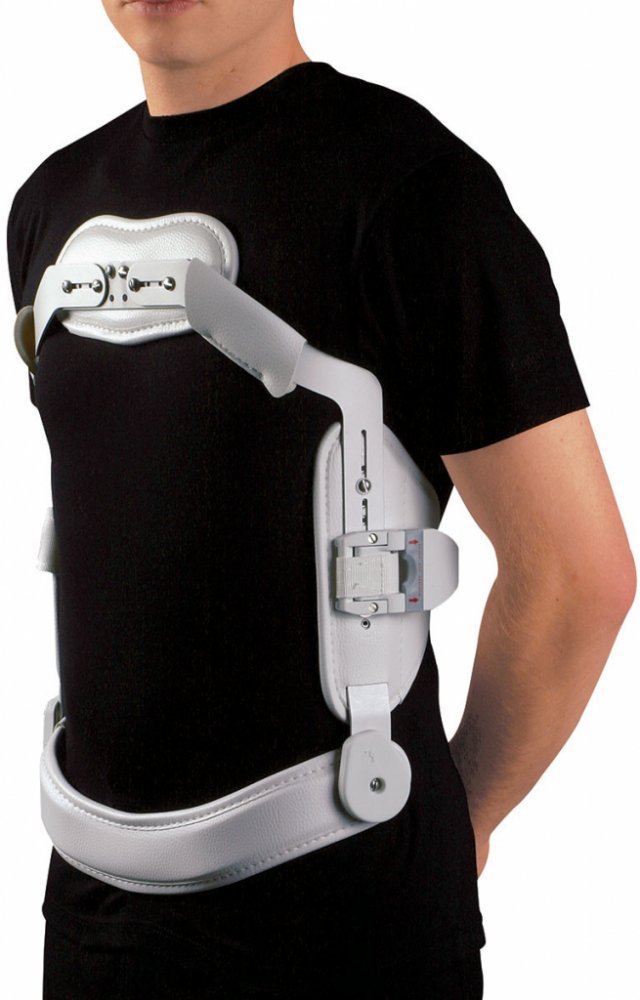 Tříbodová rámová stavebnicová ortéza s pohyblivou pánevní objímkou. Bandáž ortézy na rozdíl od konkurenčních ortéz kompletně provedena omyvatelnou vysoce kvalitní koženkou podložená pro vyměkčení molitanovou pěnou. Lehká hliníková ortéza opírající se o 3 body: hrudní kost, stydké kosti a indikované místo na páteři. Pohyblivá pánevní objímka stabilizuje dobře páteř, současně umožňuje ohyb (sed) bez posunu ortézy vzhůru, pelota může být horizontálně i vertikálně. Konstrukce je kryta měkkým pěnovým materiálem, jednoduchá manipulace – boční zapínání. K ortéze je možné přidat krční límec Philadelphia ke stabilizaci krčních obratlů.