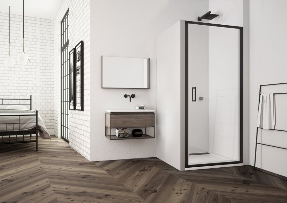 Sprchová zástěna RONAL TOP LINE S BLACK LINE s měkkými symetrickými tvary od společnosti RONAL nabízí praktické otvírání sprchových dveří ven i dovnitř. Elegantní černá matná barva dodává sprchové zástěně punc luxusu. 6mm bezpečnostní sklo s antiplakovou úpravou Aquaperle. Magnetické těsnění. Ergonomické madlo v atraktivní černé matné barvě. Černé plastové dílky. Sprchové dveře lze kombinovat s bo...