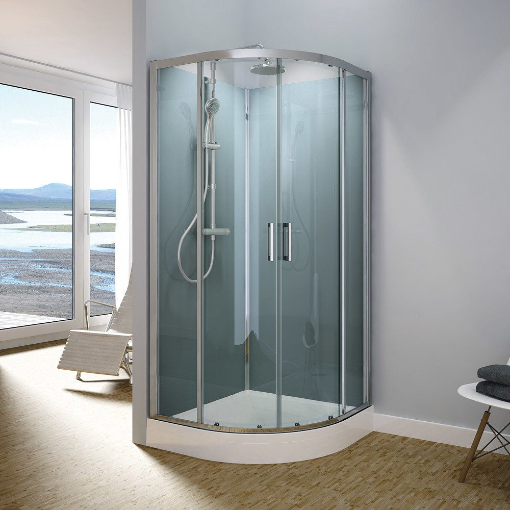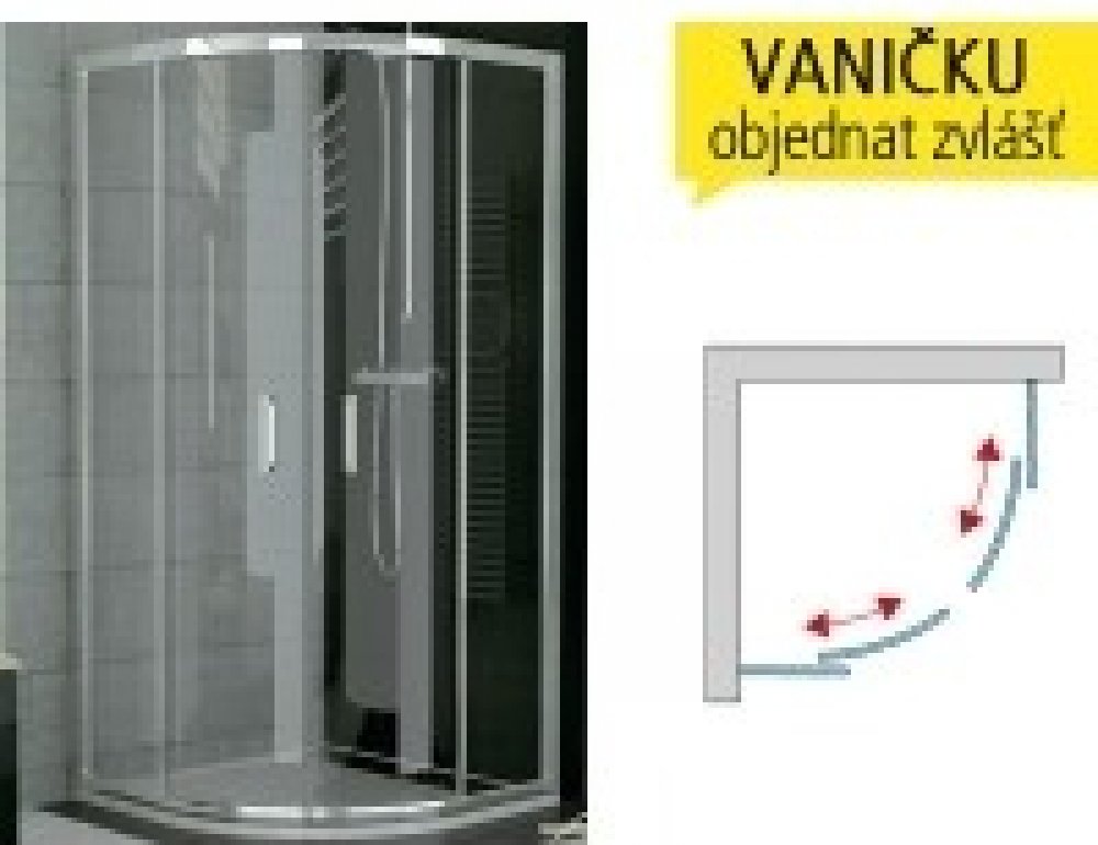 TOPR čtvrtkruh s dvoudílnými posuvnými dveřmi.