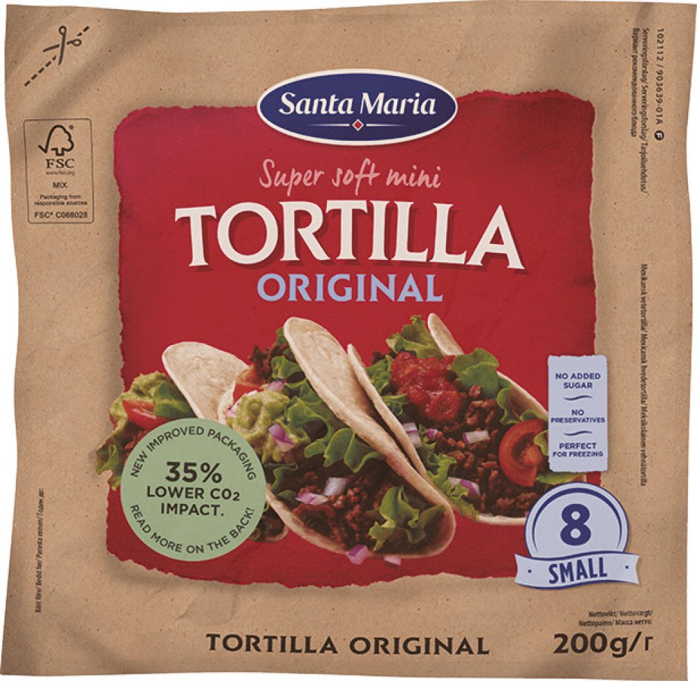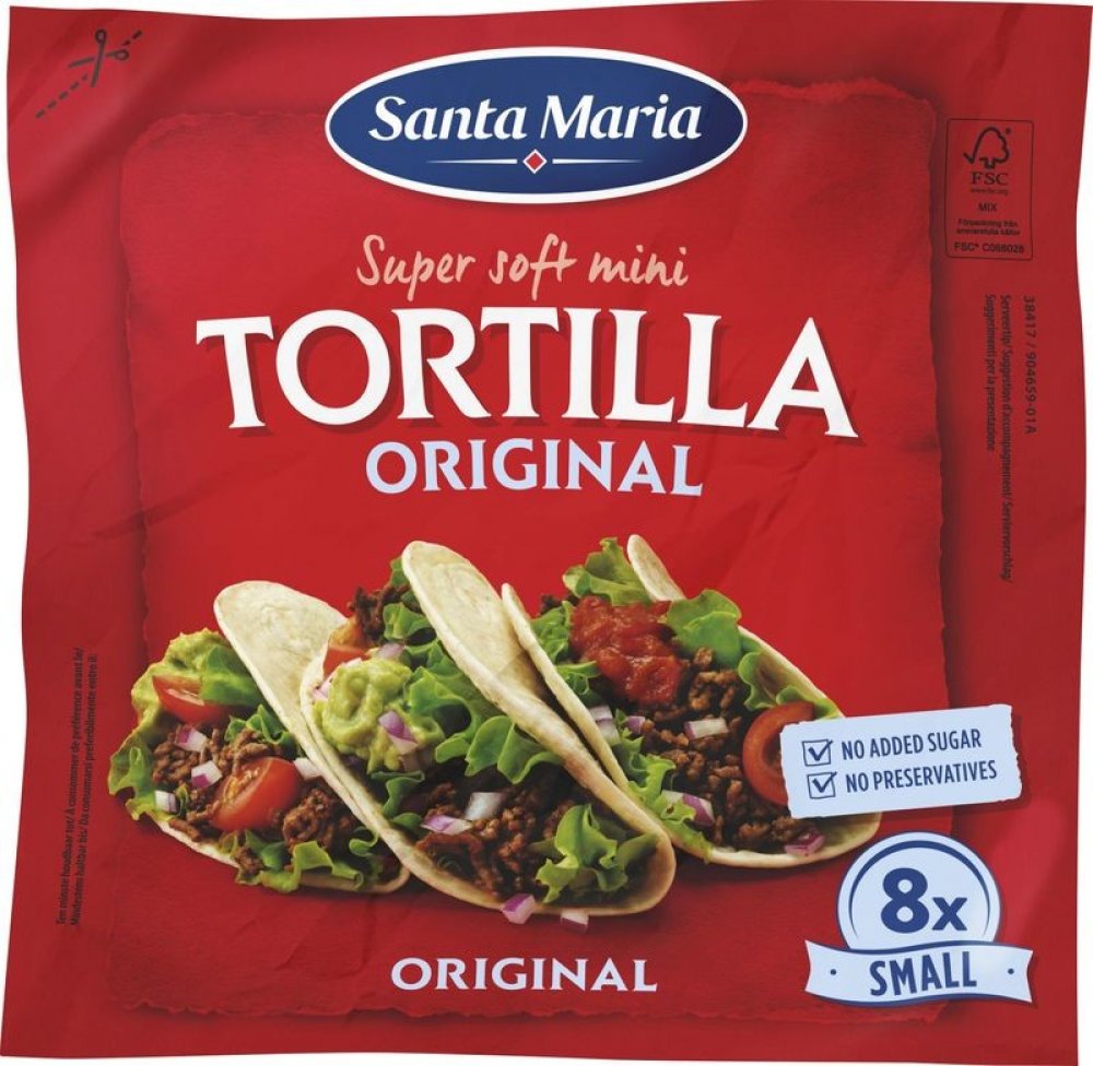 Pšeničná tortilla, která je zdrojem sacharidů, vlákniny a bílkovin.Je nadýchaná, neobsahuje konzervanty.
