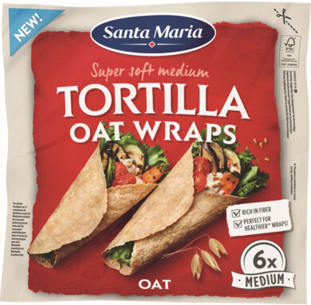 Santa Maria Ovesná tortilla 240 g. Balení obsahuje 6 medium ovesných wrap tortill, které se skvěle hodí k přípravě mexických pokrmů a wrapů. Příprava samotné tortilly je velmi jednoduchá jak pro ohřátí v troubě, na pánvi nebo tak pro ohřátí v troubě mikrovlnné. Produkt je možné zamrazit a je vhodný pro vegetariány i vegany.