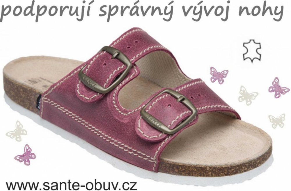 Zdravotní, velmi kvalitní obuv Santé - podporující správný vývoj nohy nejmenších . Velmi pohodlná zdravotní obuv s anatomicky tvarovanou stélkou, která podepírá příčnou i podélnou klenbu, čímž zabraňuje vzniku ploché nohy. Anatomicky tvarovaná stélka podepírá příčnou i podélnou klenbu, absorbuje škodlivé nárazy při každém kroku a svými tlumícími účinky šetří klouby i páteř . Nastavitelná šíře obuvi, kožená stélka. Botky jsou vhodné jako přezůvky, domácí nebo vycházková obuv. Péče a pohodlí na každém kroku při celodenním nošení pro děti a juniory.