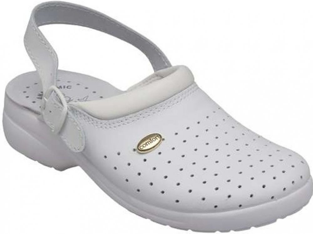 Lehké pracovní a zdravotní sandály se zvýšeným zdravotním účinkem. Svršek: hovězinová useň, kožený patní řemínek zapínaný lakovanou přezkou. Stélka: vyrobena z usně. Podešev: protiskluzová bílá nastříknutá polyuretanová. Velikosti: 42-47. Norma: ČSN EN ISO 20347:2012 SRA