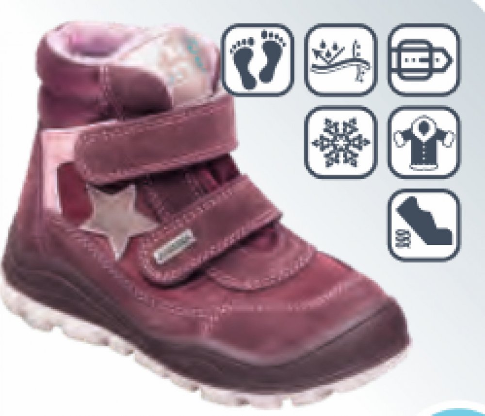 POUZE 31,33,34,35* KVALITNÍ, zdravotní vycházková obuv - skloubení zdravého obouvání s moderním designem. Péče a pohodlí na každém kroku při celodenním nošení, pro zdravý vývoj nohy nejmenších. Obuv má odpruženou patu, je zateplená s kožíškem a membránou.Svršek -kůže, textil, membrána