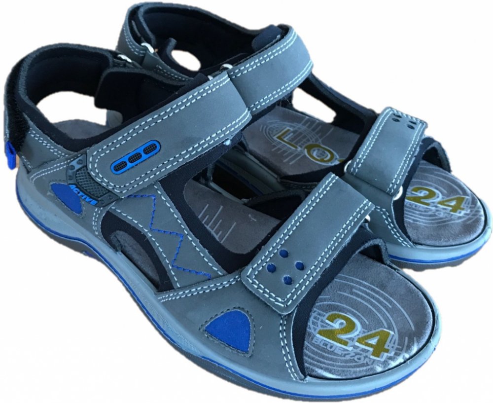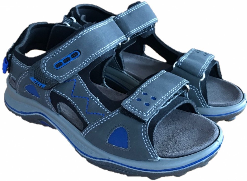 Kvalitní chlapecké sandály Santé s koženou stélkou. Botky jsou lehoučké, krásně ohebné, mají anti-šok systém (tlumí nárazy na patě). Zapínání na 3 suché zipy.