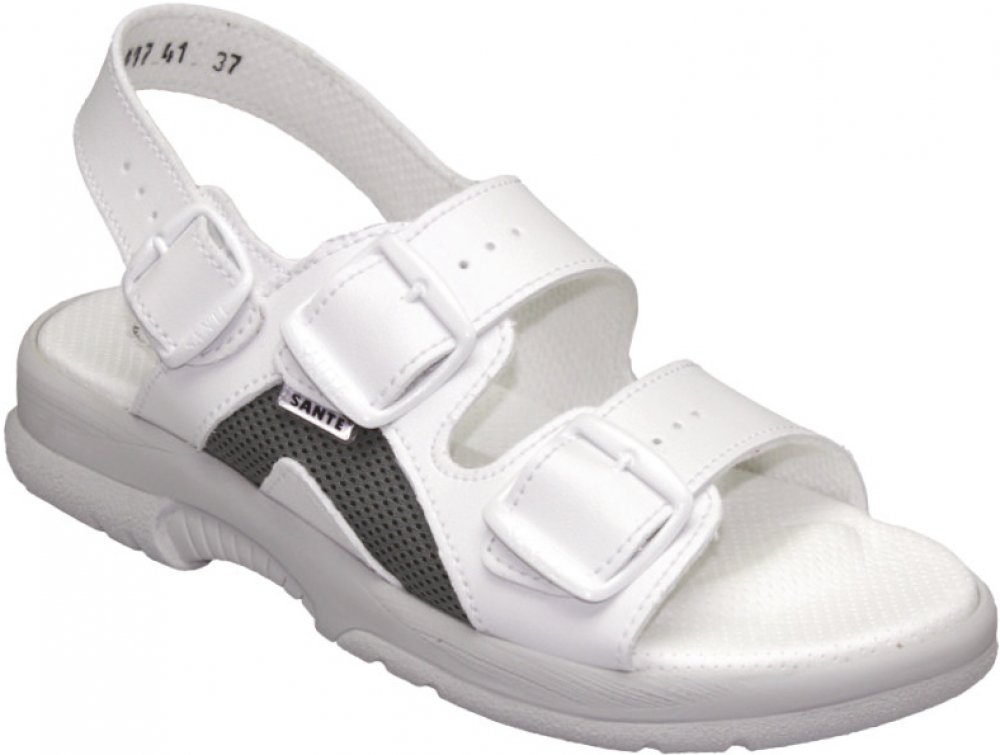 Dámský bílý sandál, z mikrovlákna, pohodlná zdravotní obuv s anatomicky tvarovanou koženou stélkou. Protiskluzová podešev,nezanechává šmouhy na povrchu. Nastavitelná šíře obuvi - na dvě přezky, a nastavitelné přes patu-přezka. Certifikovaná pracovní obuv.