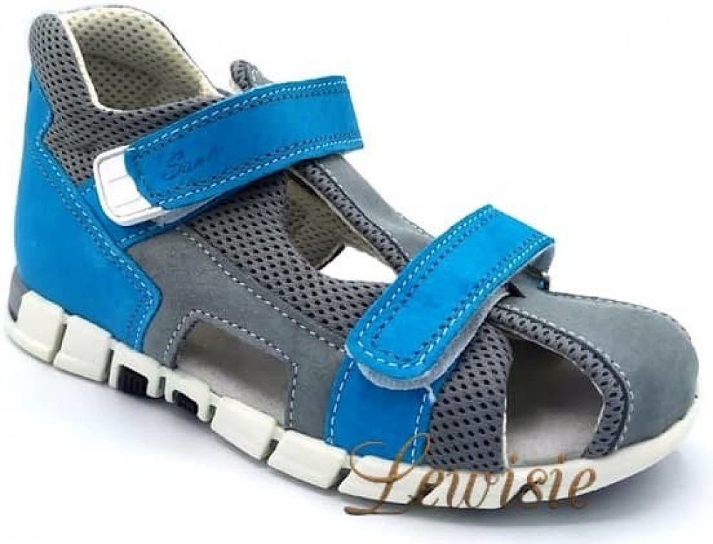 Dětský sandál s chráněnou špičkou a s koženou stélkou, flexibilní, pohodlná obuv. Nastavitelná šíře obuvi - na dva suché zipy, šíře obuvi H. Podešev nezanechává šmouhy na povrchu. Obuv vhodná pro správný vývoj nohy. Vhodná pro kluka.Certifikovaná obuv.