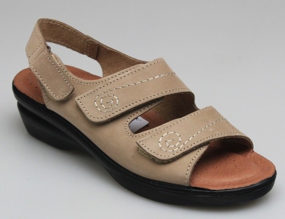 Dámský béžový sandál s anatomicky tvarovanou stélkou. Jsou určeny jako zdravotní, pracovní, domácí či vycházková letní obuv. Nastavitelná šíře a nastavitelné přes patu - tři suché zipy. Měkká, pohodlná obuv.